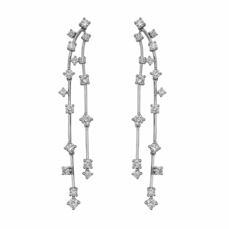 Длинные серьги из белого золота с бриллиантами.