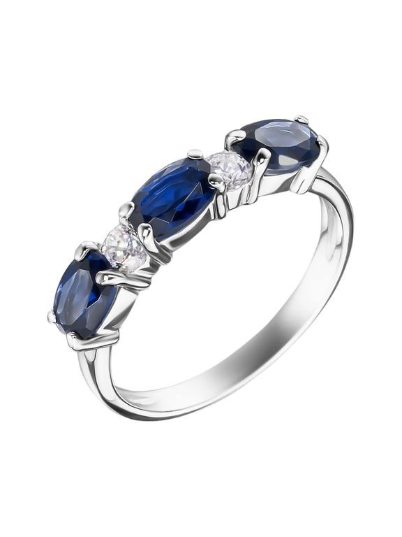 Это кольцо дорожка с бриллиантами и сапфирами. Овальные сапфиры чередуются с бесцветными бриллиантами и создают яркую дорожку драгоценных камней, завораживающих своей игрой.