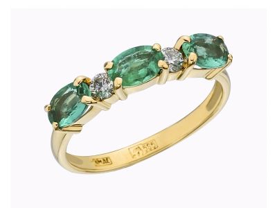 Это классическое кольцо-дорожка с тремя изумрудами овальной формы и двумя белыми бриллиантами. Эта дорожка отличается лаконичным дизайном и подходит к любому стилю одежды. Обратите внимание, как лапки, держащие изумруды, одновременно обеспечивает закрепку бриллиантов, что позволяет придать кольцу «легкое» настроение. Изумруды и бриллианты закреплены на разных уровнях, а это значит, что кольцо будет радовать глаз не только видом сверху, но и с боку.