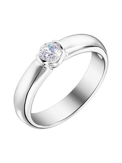 Это кольцо с бриллиантом четверть карата. Низкая посадка камня обеспечивает комфортное ношение этого помолвочного кольца в повседневной жизни. Дизайн кольца позволит идеально стык-в-стык носить его с обручальным кольцом.