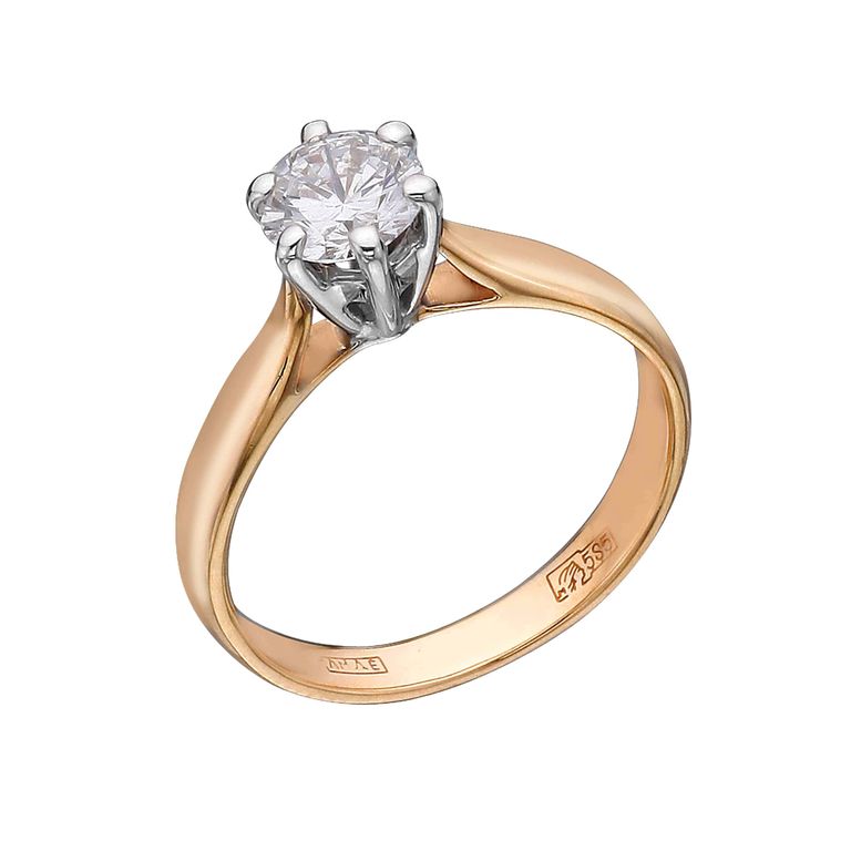 Это золотое кольцо - яркий представитель классического одинарника, кольца с одним крупным бриллиантом, закрепленным в шести надежных крапанах (лапках). Кольцо выполнено в розовом золоте, каст - в белом и покрыт белоснежным родием. Благодаря этому лапки сливаются с бриллиантом, а блеск белого золота только усиливат игру крупного камня.