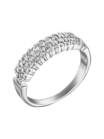 Это кольцо с россыпью бриллиантов из белого золота. Три ряда небольших камней создают единую сверкающую бриллиантовую поверхность, завораживающую своей игрой.