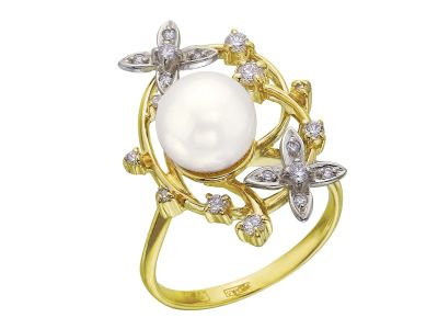 Кольцо с жемчугом и бриллиантами.