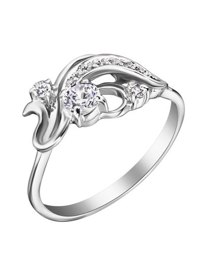 Это кольцо волна с бриллиантами. Плавный изгиб драгоценного металла, украшенный небольшими бриллиантами, изящной волной огибает центральный камень.