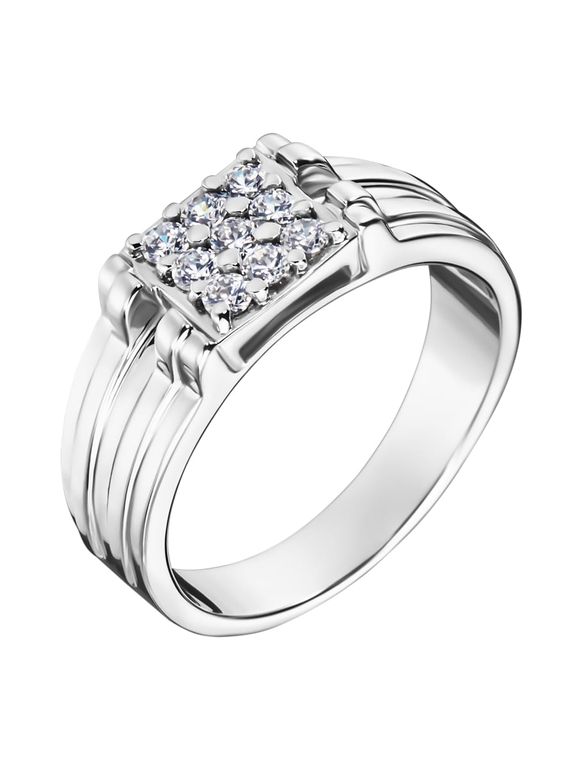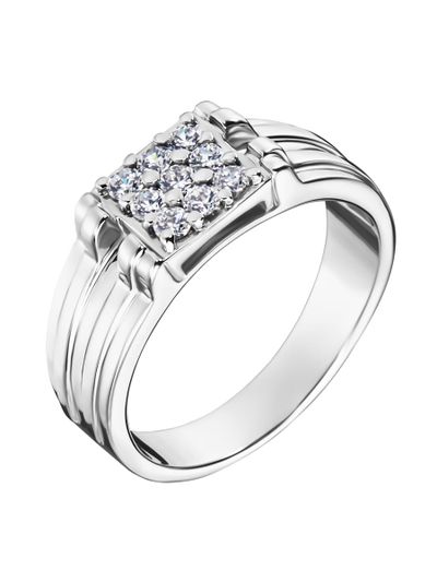 Это мужская печатка из золота с бриллиантами. Широкое мужское кольцо украшено верхушкой из девяти небольших бриллиантов, образующих сверкающую поверхность.