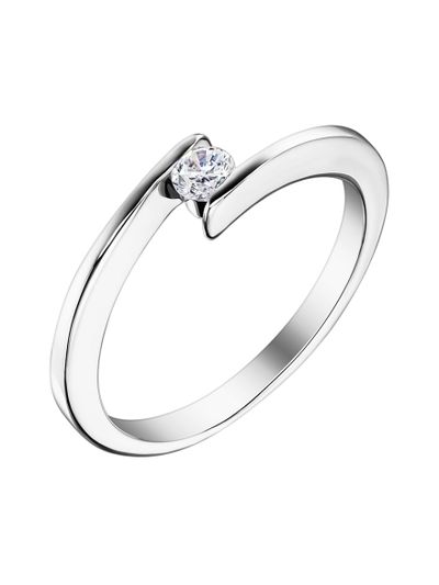 Это разомкнутое кольцо с бриллиантом, закрепленным в рельсу из двух золотых плоскостей. Под бриллиантом есть перемычка, обеспечивающая твердость конструкции. Поэтому несмотря на всю "воздушность" конструкции сохранности камня ничего не угрожает