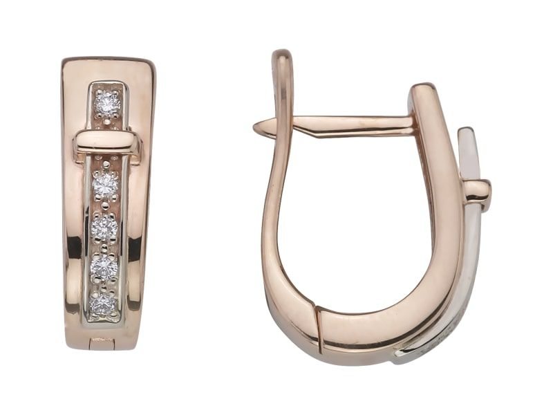 Это серьги ремешок с бриллиантами. Накладка-ремешок из белого золота, украшенная белыми бриллиантами, аккуратно «пристёгнута» к основе серьги золотой пряжкой. Серьги обладают интересной формой и надёжным английским замком.