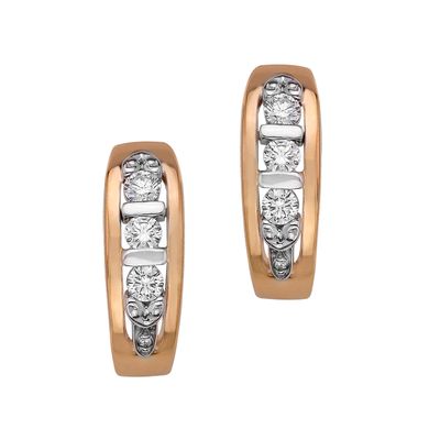 Это серьги с бриллиантовой дорожкой. Центральная дорожка состоит из трёх бесцветных бриллиантов, закреплённых в рельсы из белого золота. С каждой стороны завершают дорожку небольшие листики с маленькими бриллиантами. Дорожка сохраняет «воздушность» и удачно разместилась на розовом золоте основания серьги.