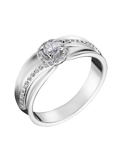 Это широкое помолвочное кольцо не оставит Вас равнодушным. Изгибающийся профиль и изящные дорожки небольших бриллиантов затейливо обыгрывают значительную ширину кольца. Центром внимания же служит возвышающийся центральный бриллиант, надежно закрепленный в четырех лапках.