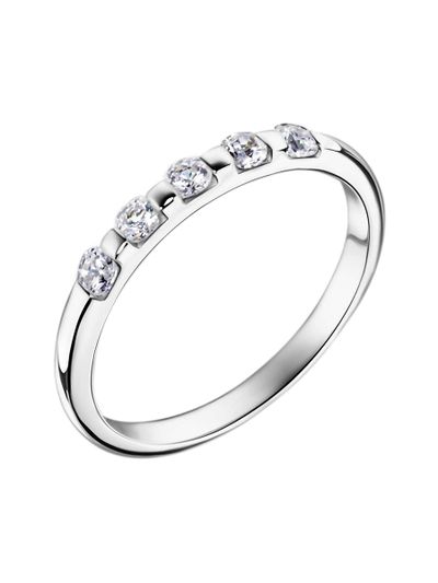Это тонкое кольцо дорожка с бриллиантами, выполненная из белого золота. Пять камней закреплены в рельсовую закрепку, сохранив доступ света к бриллиантам. Колечко тонкое и нежное, идеально подходит для маленькой субтильной ручки.
